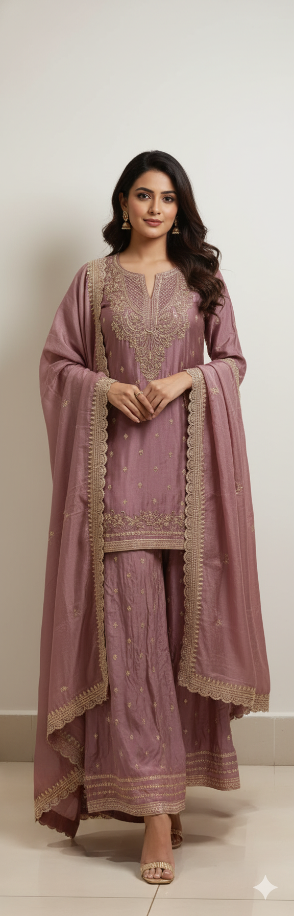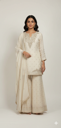 Unveil timeless beauty with the Flared Sharara, available in the elegant shades of Grey, Gold, and Mouse. Crafted from luxurious Tissue fabric, this set offers a sophisticated, fluid drape that enhances its graceful flared silhouette. The exquisite combination of soft hues and rich texture makes it perfect for weddings, festivals, or any grand occasion. With its impeccable design and luxurious feel, the Flared Sharara is the epitome of elegance and refinement.