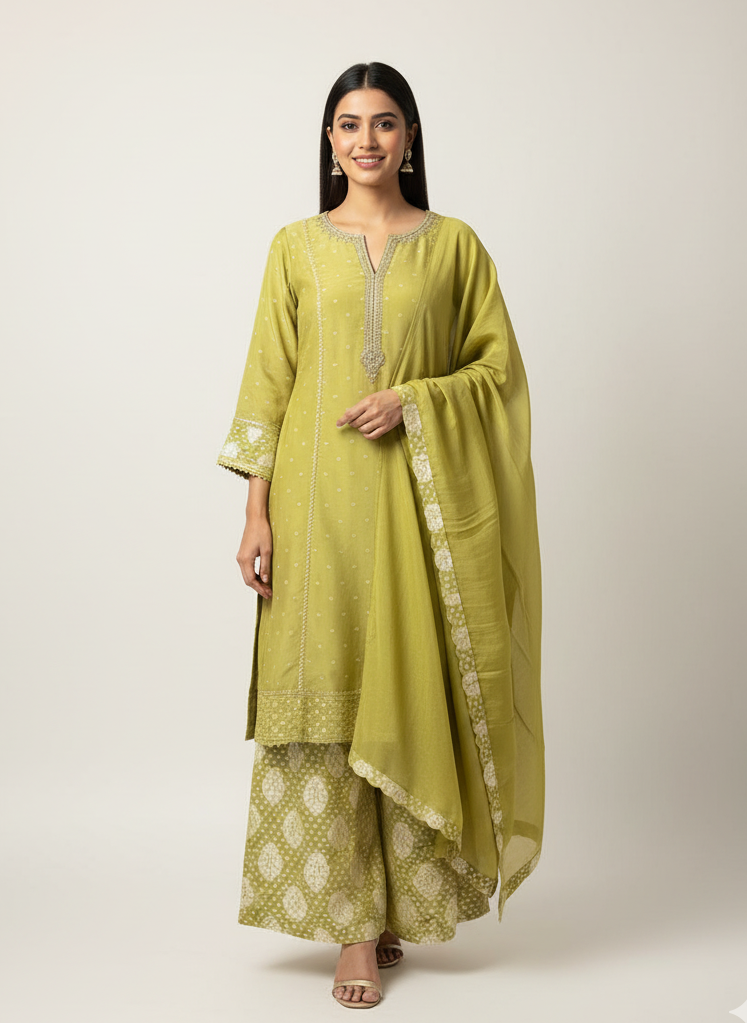 Elevate your style with the suit with printed pent and dupatta, available in elegant shades of CREAM, BLUE, MOUVE and GREEN. Crafted from luxurious BANARSI ORGANZA fabric, this set offers a smooth and lustrous finish that adds a touch of sophistication to any occasion. The sleek design ensures both comfort and style, making it perfect for festive events, semi-formal gatherings, or evening outings. The UV0657 heavy suit combines modern elegance with timeless beauty, offering you a refined and chic look for any special occasion.