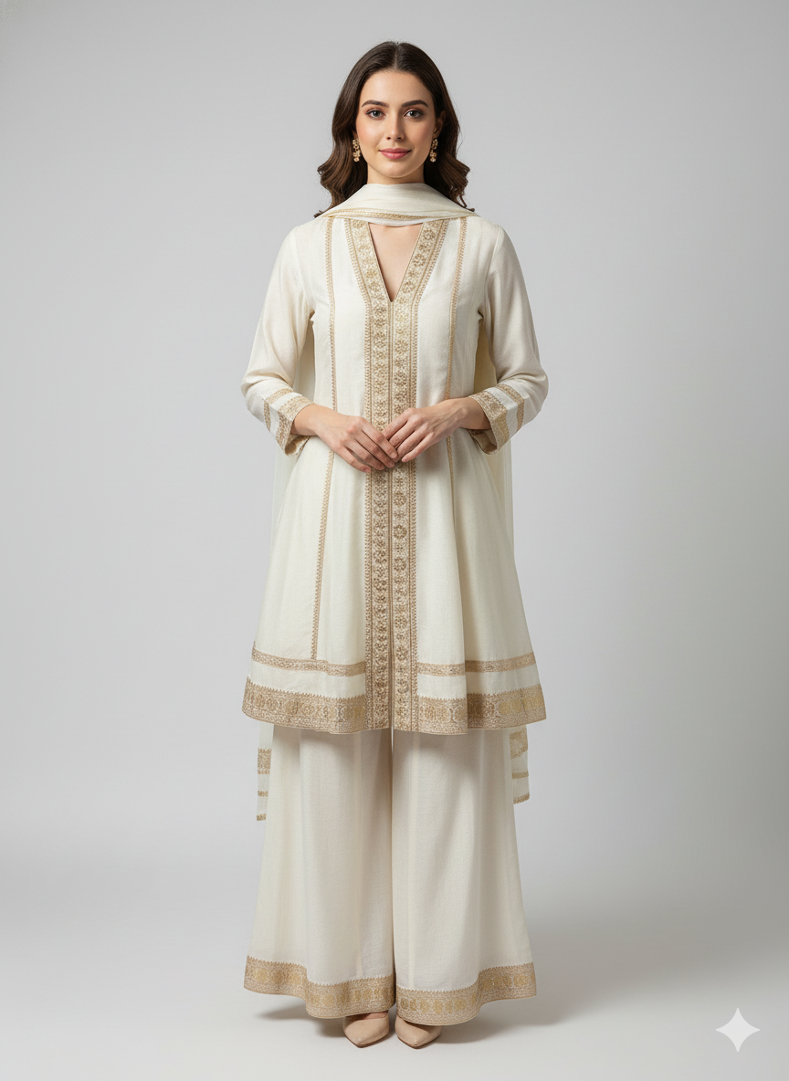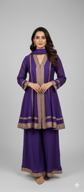 Elevate your style with the trending designer suit with dupatta, available in elegant shades of RED, PURPLE, CREAM, and FEROZI. Crafted from luxurious SILK fabric, this set offers a smooth and lustrous finish that adds a touch of sophistication to any occasion. The sleek design ensures both comfort and style, making it perfect for festive events, semi-formal gatherings, or evening outings. The UV0643 heavy suit combines modern elegance with timeless beauty, offering you a refined and chic look for any special occasion.