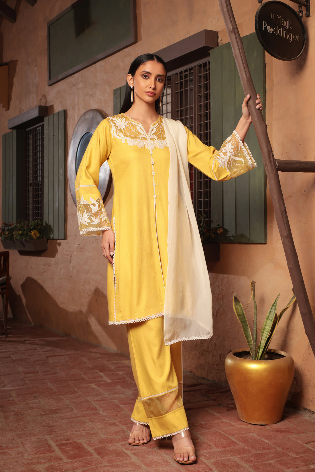 YELLOW LINEN SILK PAKISTANI SUIT SET