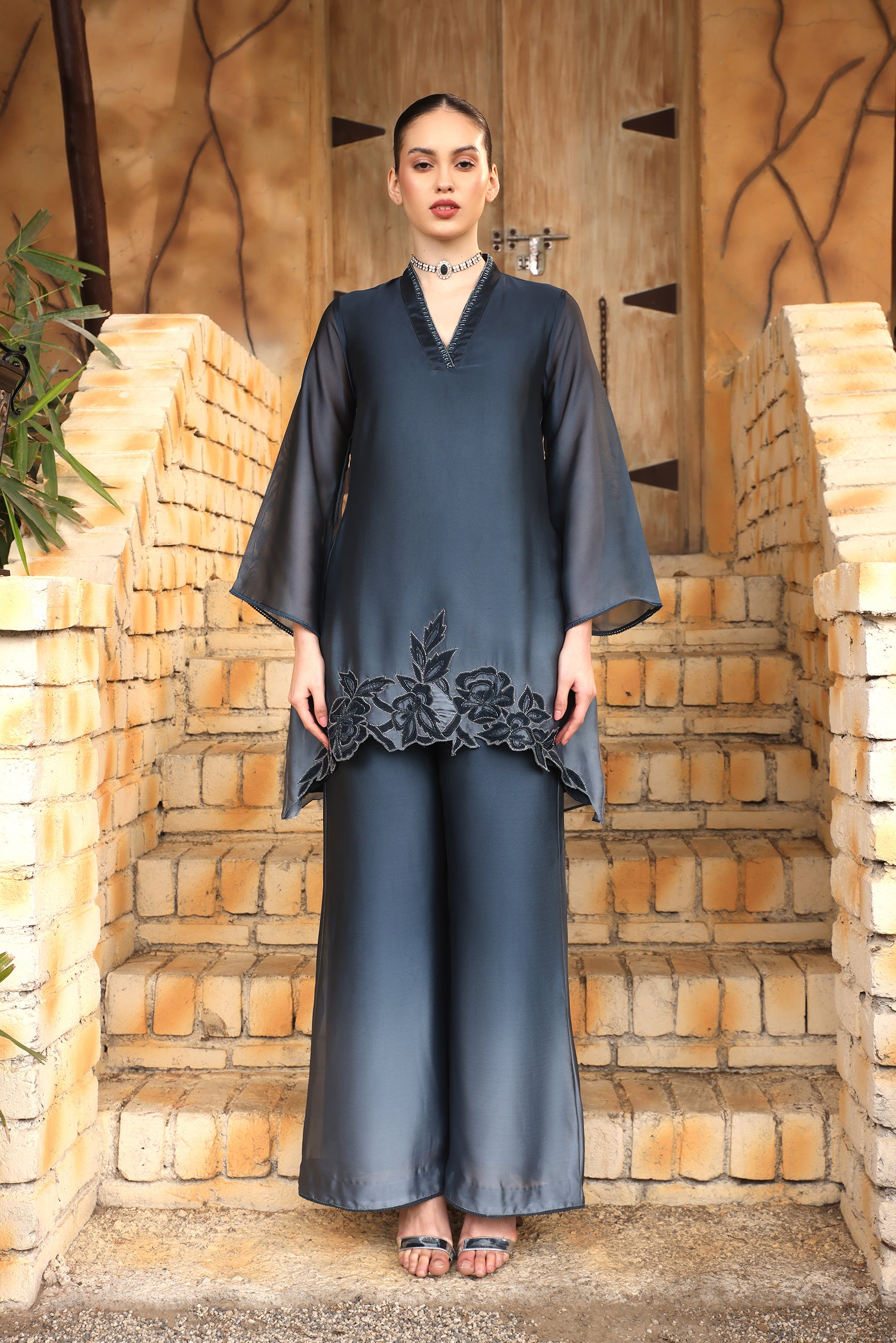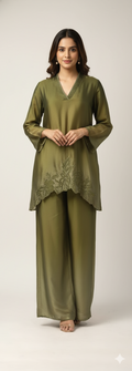 Add a touch of elegance with the A-Line Pants, available in the rich tones of Wine, Olive, and Grey. Crafted from luxurious Shaded GGT fabric, these pants offer a sleek and flattering A-line silhouette. The soft, textured fabric drapes beautifully, making them perfect for both casual and semi-formal occasions. The unique shaded design adds a modern twist to a classic style, ensuring you stand out with sophistication and grace..